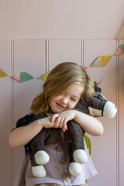 Thunder the Horse from Nana Huchy is no ordinary plush toy—he’s a dark stallion with a rebellious streak and a heart of gold. According to his backstory, Thunder once worked at a prestigious racehorse stud farm in NSW but refused to work without pay (and no, carrots didn’t count!)