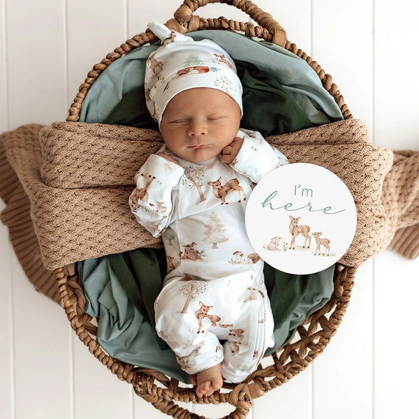 This 2 in 1 pack contains 25 Reversible milestone cards that coordinate with our organic wraps and clothing.