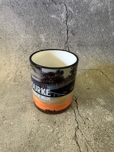 Bourke Coffee Mug Sublimated Black Rim Jandra Bridge Outback Scene