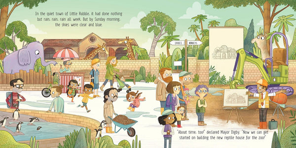 It's an exciting day at the Little Rubble Zoo, as work is beginning on a new reptile enclosure! The only problem is that it has rained all week and Mayor Digby's digger soon becomes completely stuck in the squishy mud!