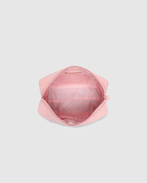 The Destiny Cosmetic Case is a compact beauty accessory perfect for overnight stays and weekend getaways. Crafted from soft scalloped material, this large cosmetic bag stores all your travel essentials with its secure zip closure. Perfect for your weekender bag, this cosmetic case will keep your skincare essentials secure on your next adventure. *Beauty products not included.