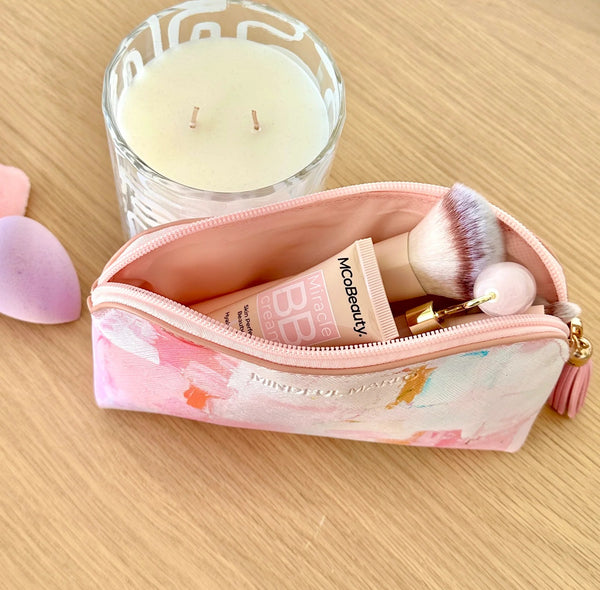 These beautifully crafted pouches are perfect for storing your makeup essentials.